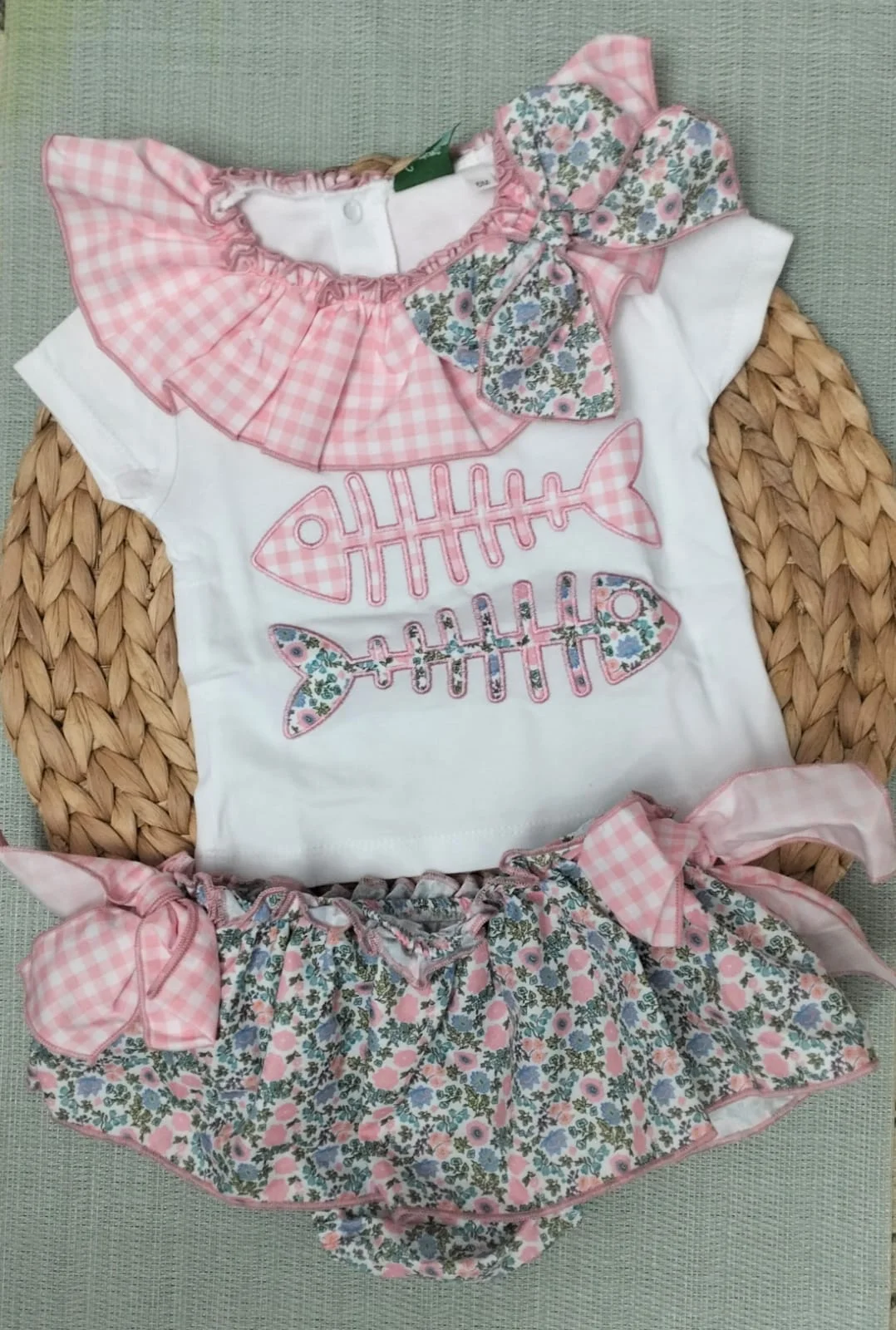 Conjunto de dos piezas, con estampado de zurraspa de pez.