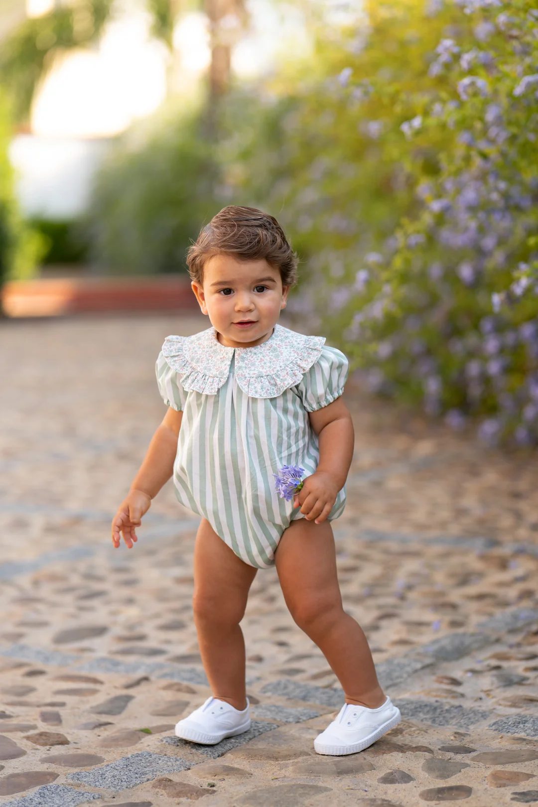 Pelele de rayas con cuello de estampado de flores, de la marca José Varón.