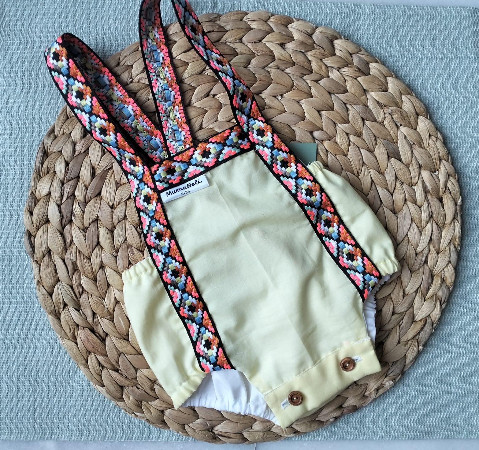 Ranita confeccionada en lino y forrado con batista, todo 100% algodón, y tirantes tipo étnico.